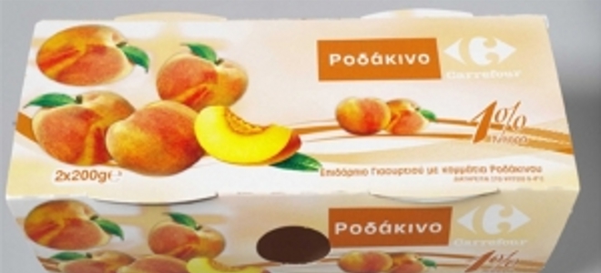 - 48.312τεμάχια επιδορπίου γιαουρτιού με ροδάκινο CARREFOUR, 1% λιπαρά σε συσκευασίας 2 χ 200 γρ.CARREFOUR, με bar code 520 4239 232057.